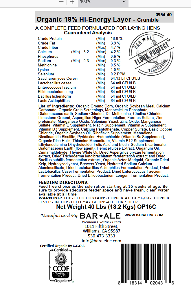 Bar Ale Organic Chicken Layer Crumble 40lbs